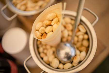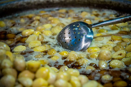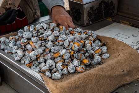 Fried chestnuts on the street. Street food. Roasted chestnuts