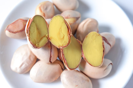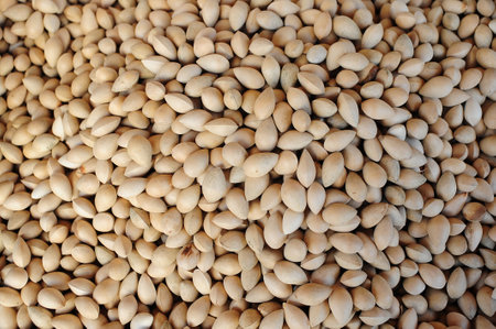 Many yellow pistachio nuts and shells texture pattern in Bremerhaven Germany.