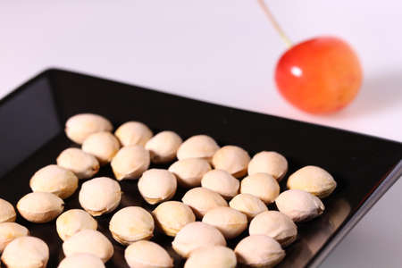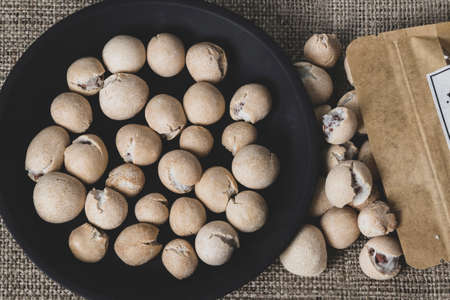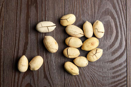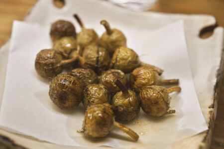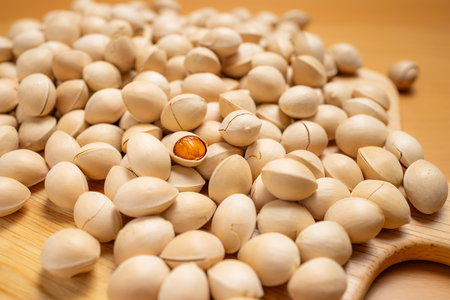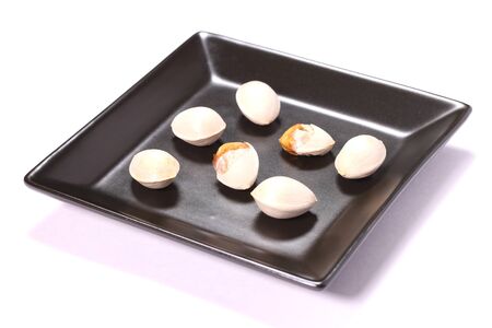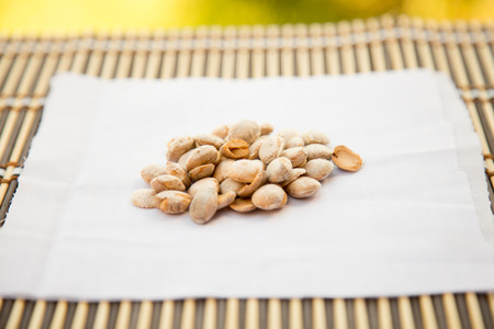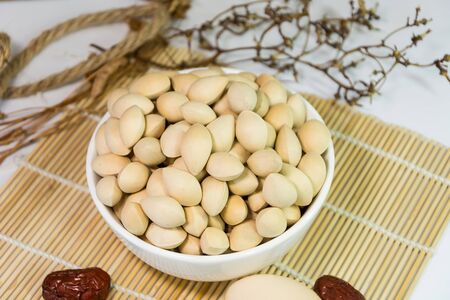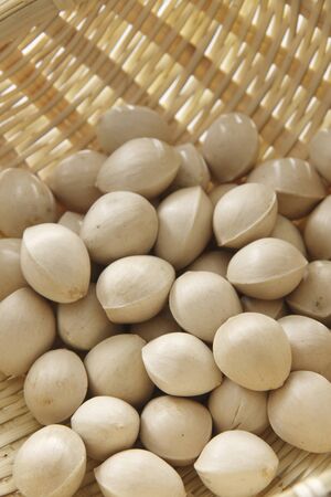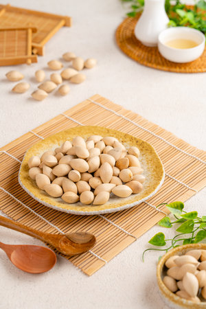Ginkgo nuts seed salted Ginnan japanese snack served on wooden table