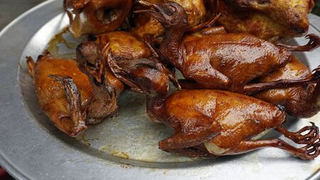 Grilled little ducks at a local Chinese market in Beijing