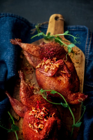 Smoked quails with herbs and spices