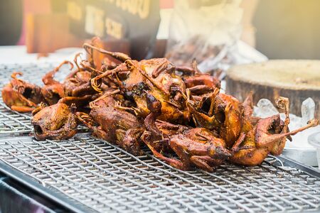 Grilled Frog Meat. Vietnamese street food whole BBQ frog.
