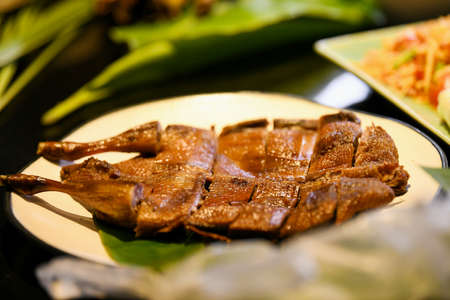 Roasted duck, Isan food with delicious dipping sauce.