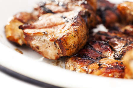 Grilled pork chops isolated on white background