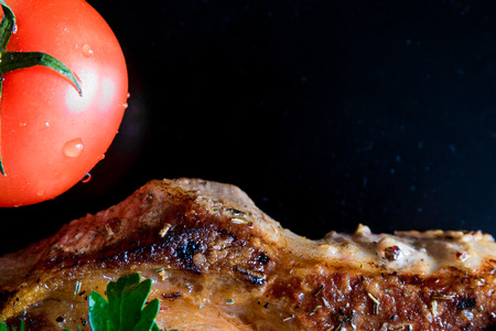 Grilled Pork chop on black background