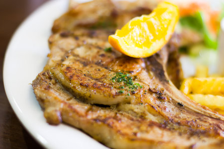 Pork chop on the table, close up shot
