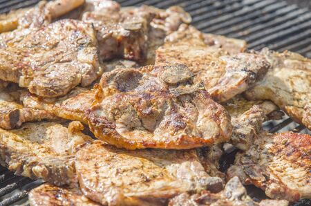 Grilled pork on the grill