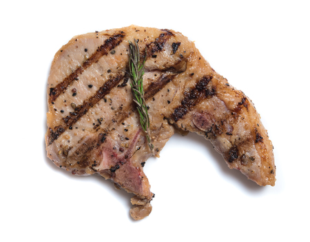 Close Up of Grilled Pork Steak Isolated on a White Background
