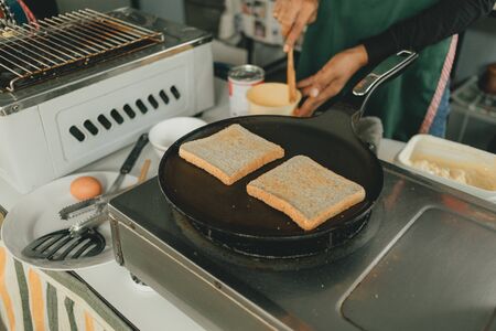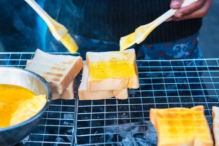 Asian toast. Thai street food vendor in Bangkok, Thailand. Streetfood in south east asia