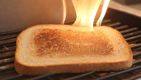 AI Generated. Burnt Toast on Kitchen Counter with Smoke Rising
