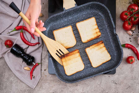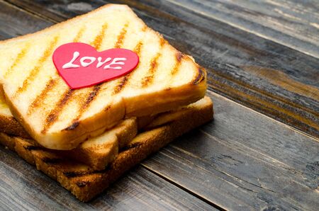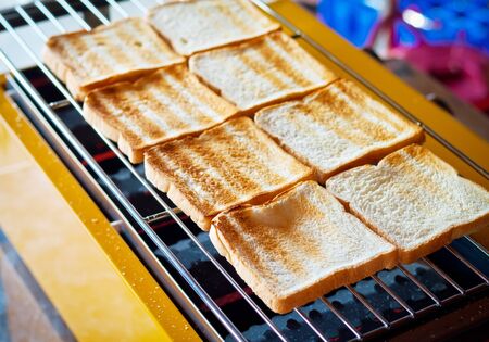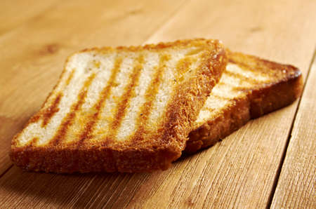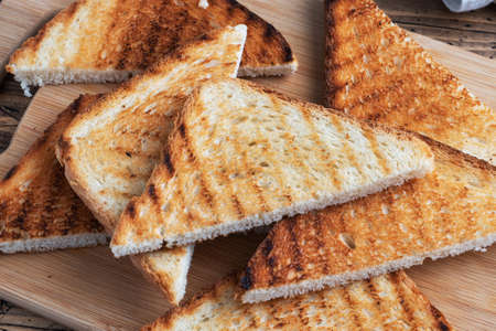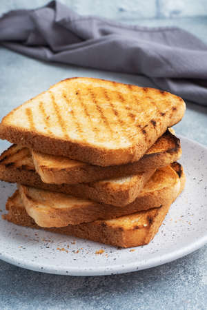 Tasty fresh crispy bread slices in the form of grilled toast for cooking delicious family breakfast