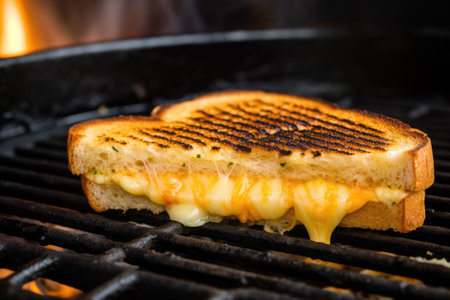 grill marks visible on a cheese sandwich on a grill, created with generative ai