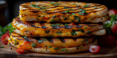 multiple varieties of grilled cheese sandwiches on a tray, created with generative ai