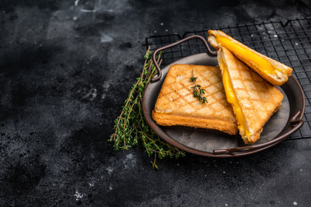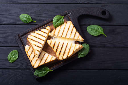 Grilled sandwiches with cheese. Fresh homemade breakfast on rustic background