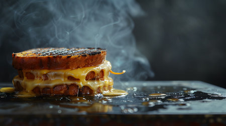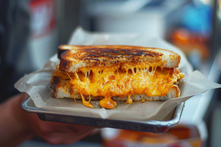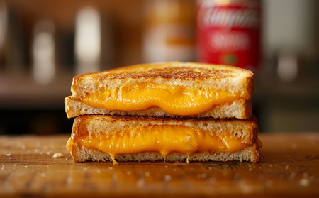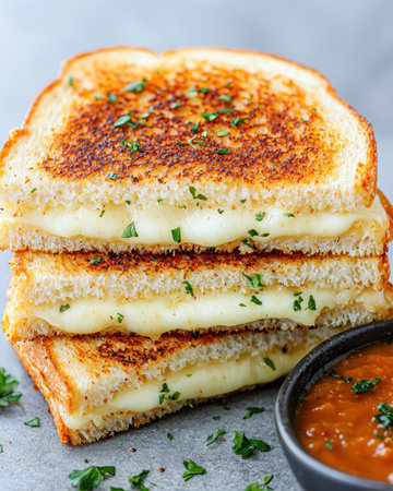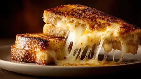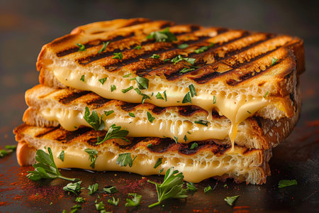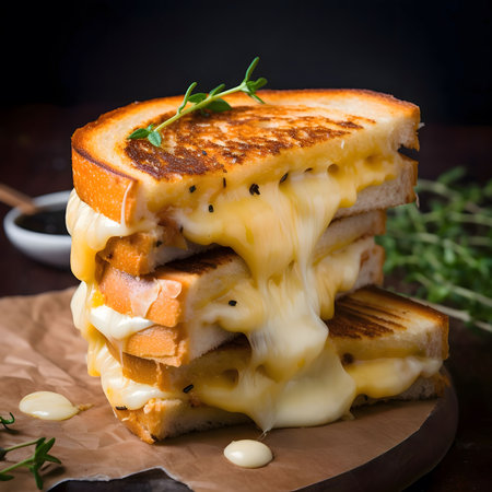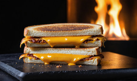 Experience the delightful sight of a grilled cheese sandwich with golden-brown bread and gooey cheese. Ideal for food lovers, this image captures comfort in every bite.