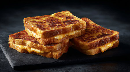 Delicious Stack of Grilled Cheese Sandwiches on a Dark Textured Stone