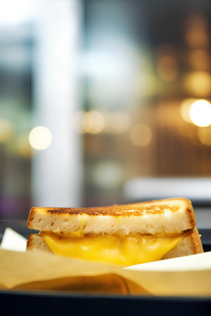 Grilled cheese sandwich with melted cheese and crispy bread
