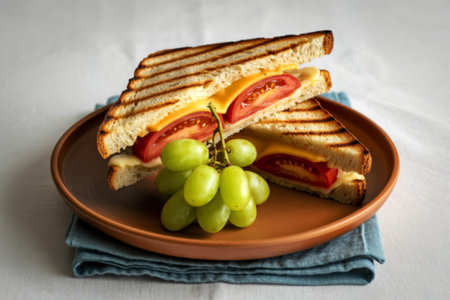 Grilled gourmet sandwich with melting cheddar on toasted bread plate generated by artificial intelligence