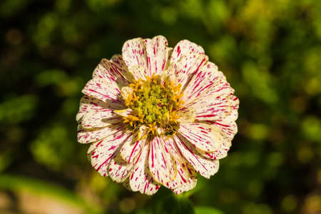 A Pop Art Red and White Zinnia flower growing in Friuli-Venezia Giulia, north east Italy in July