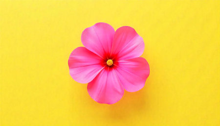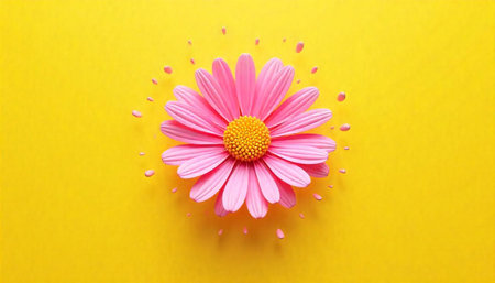 Pink daisy on yellow background, bright and cheerful mood