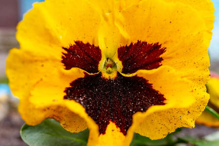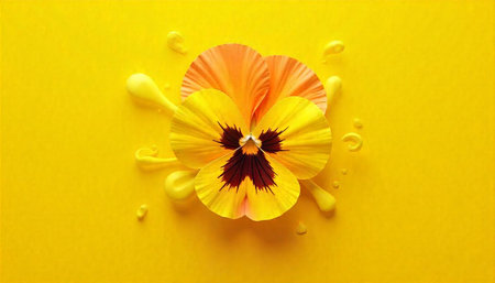Bright Yellow Pansy Flower on Yellow Background with Paint