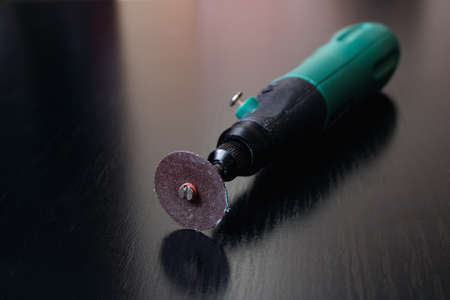 construction tool for grinding and cutting metal isolated with blur background of working person in workshop