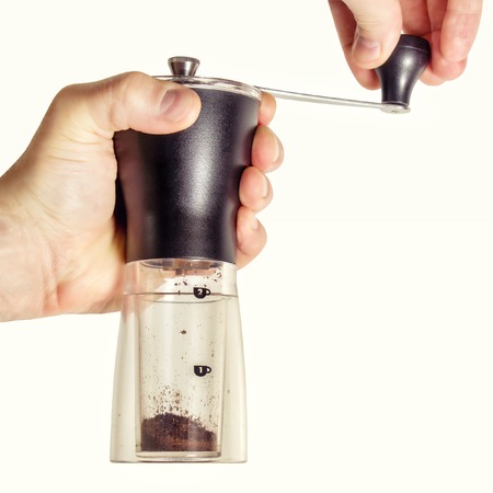 a female hands and coffee grinder