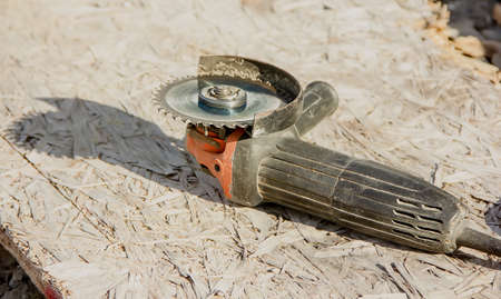 Renovation at home angle grinder electric tool for cutting tile in construction site