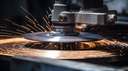 Intense macro shot of a grinding wheel smoothing down rough edges of metal with a shower of sparks