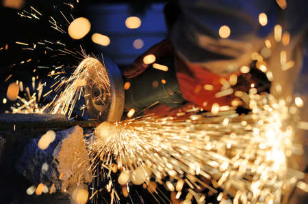 Orange sparks generated when working with metal objects. Photo taken closeup.