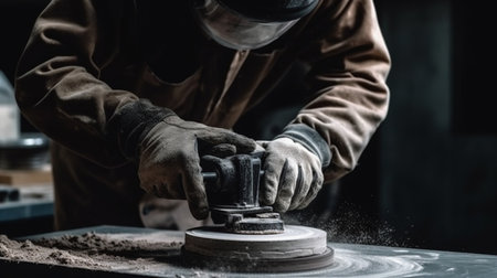 close up worker using grinder