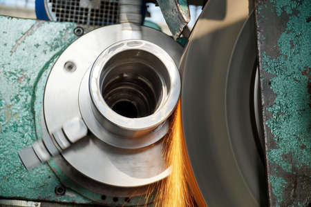 High-precision fine-tuning of a part on a circular grinding machine with sparks.
