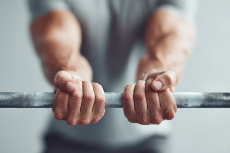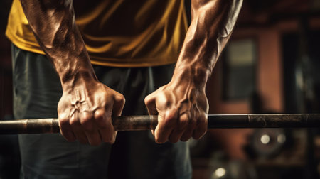 Close-up of Strong Hands Gripping a Weight Bar in a Fitness Gym Capturing the Essence of Strength, Determination, and Commitment to Exercise
