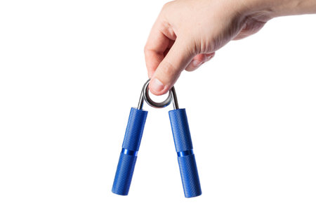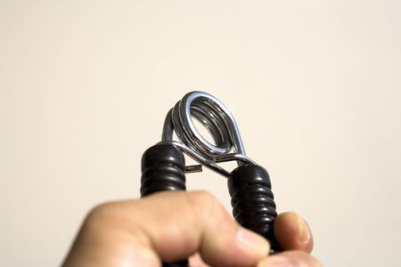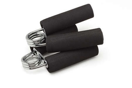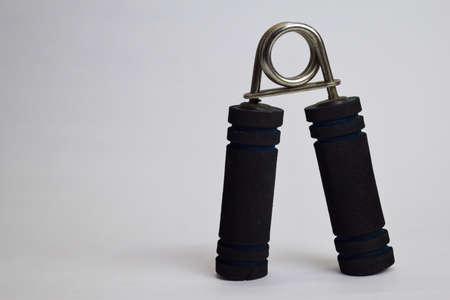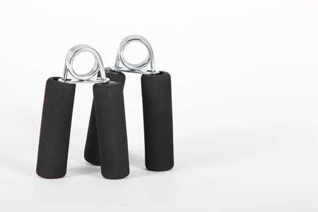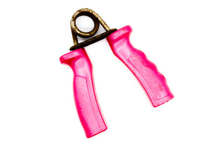 Hand grip exercise gymnastic forarm strenght isolated on white background with copy space for your text.