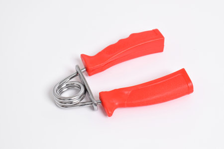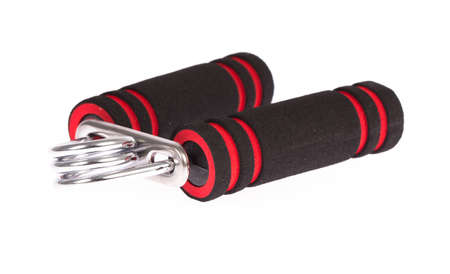 Red Handgrip isolated on white background. Hand grip exercise equipment