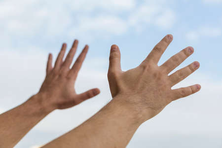 Human hands stretched out in the sky in Turkey