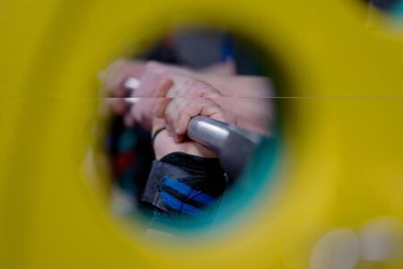 close up of the hand of a man using a resistance tool to exercise the forearm and strengthening the grip