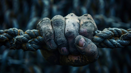 Hands with a rope on a black background. A man pulls a rope wrestling. Drag the business to your side.