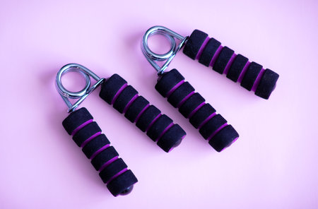 Hand grip strengthener for hand exerciser on a purple background