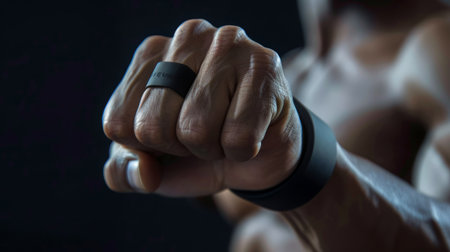 Closeup of a Mans Hand Wearing a Black Fitness Tracker Ring