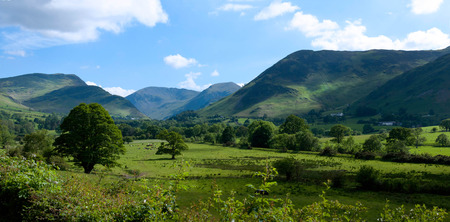 Panoramic Mountain valley landscape in Fairfiled Horseshoe, Lake District, Cumbria, Great Britain