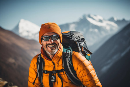 Journey of Joy: Smiling Sherpa Man Embracing Majestic Mera Peak in High Himalayas Expedition