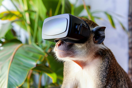 A captivating close-up of a thoughtful monkey with its hand on its head, surrounded by lush green leaves. This portrayal captures the essence of curiosity and contemplation in a serene natural habitat, showcasing wildlife beauty.