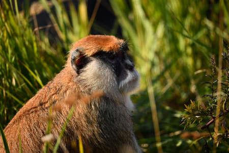 Funny Pose of Fluffy Monkey, Among guenons, De Brazza’s monkey