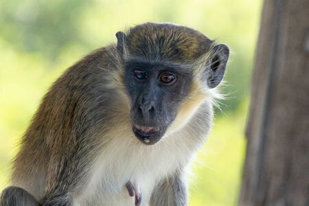 Cercopithecus ascanius monkey or Red tailed Guenon monkey. Sad portrait