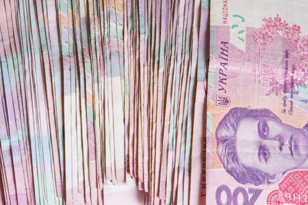 A bunch of banknotes with a face value of two hundred hryvnias. Ukrainian money.