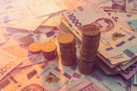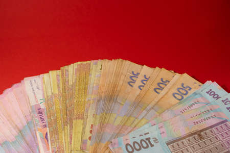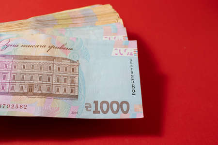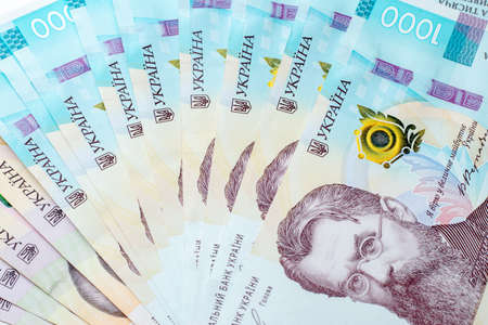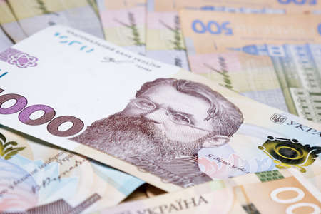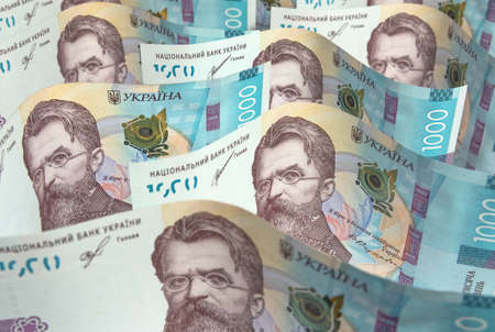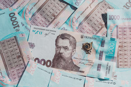 Ukrainian hryvnia, several banknotes of 1000 and 500 hryvnias. Financial background from Ukrainian banknotes. Close-up.