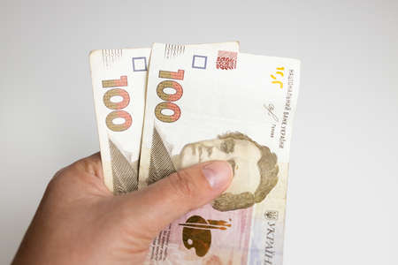 Banknote of the Ukrainian national currency hryvnia. Cash of the National Bank of Ukraine.