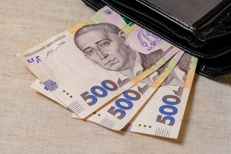 Money of Ukraine. Several Ukrainian hryvnia banknotes. UAH. Hryvnia 500