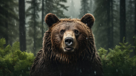 Majestic Brown Bear in Lush Forest Landscape.